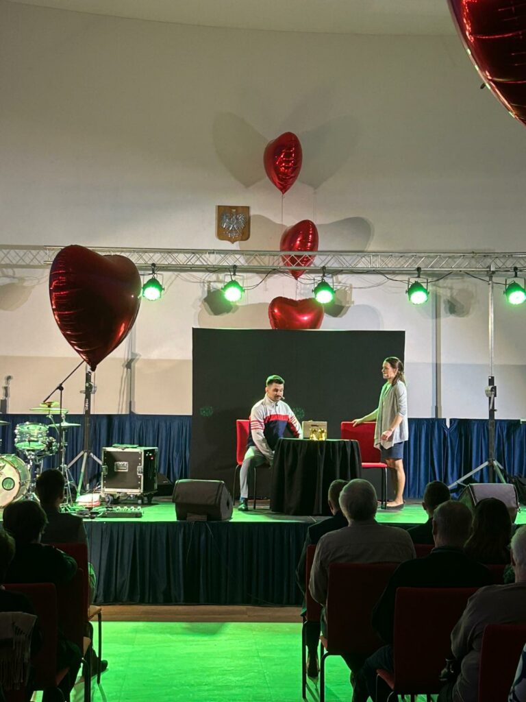 14 lutego 2026 roku romantyczny klimat zagościł w murach Gminnej Biblioteki Publicznej w Niemcach, gdzie odbył się wyjątkowy, walentynkowy wieczór pełen humoru, muzyki i dobrej zabawy. Biblioteka na jeden wieczór zamieniła się w nastrojową przestrzeń spotkań, wypełnioną śmiechem, oklaskami i tanecznymi rytmami.