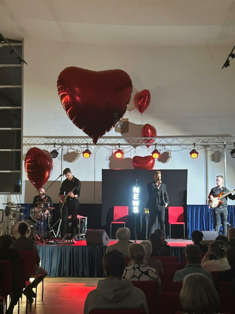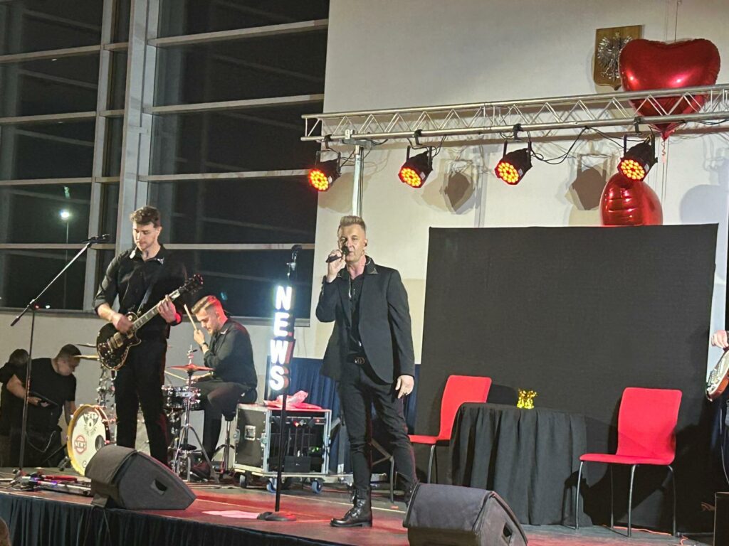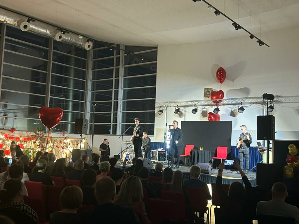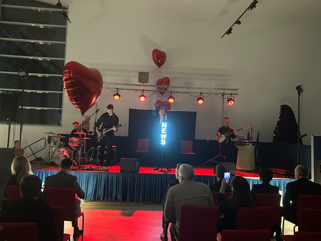 Po kabaretowej części wieczoru przyszedł czas na muzyczne emocje – koncert Zespołu News porwał uczestników do wspólnego śpiewu i zabawy. Zwieńczeniem walentynkowego świętowania była potańcówka z DJ Serferem, podczas której parkiet ani na chwilę nie pozostawał pusty.