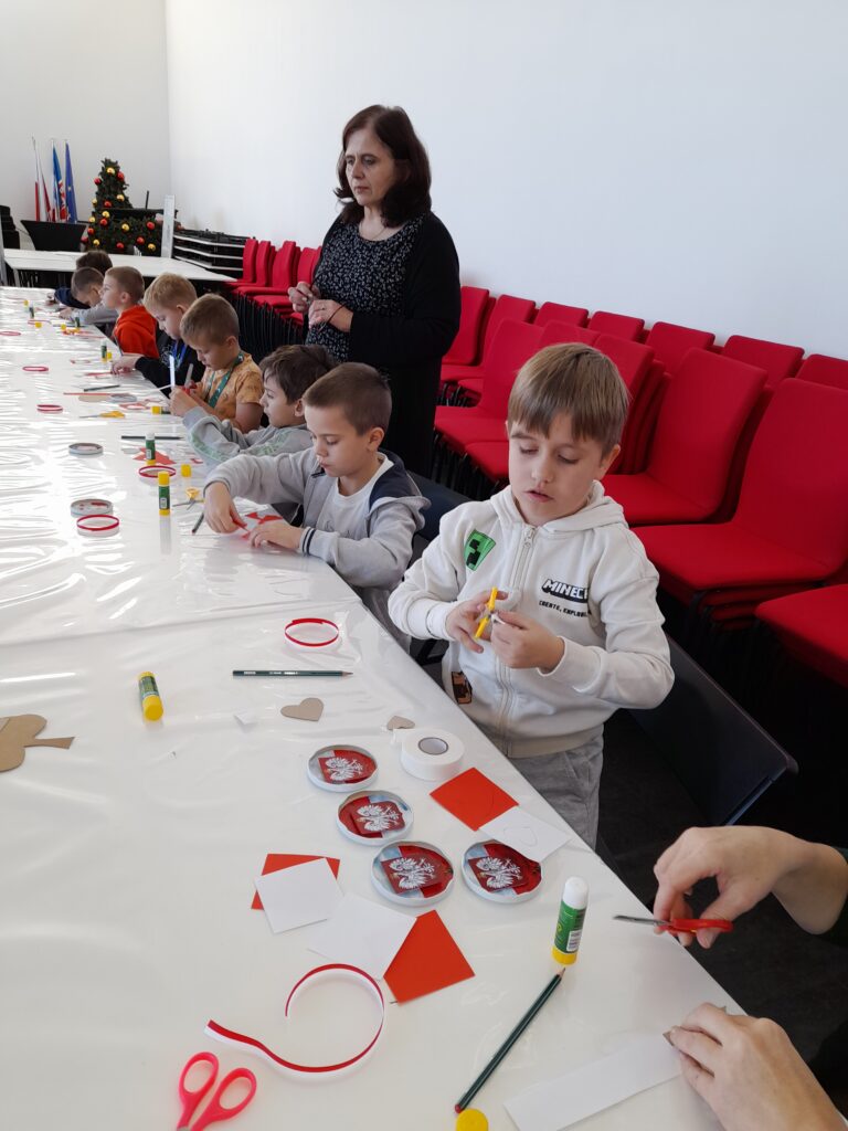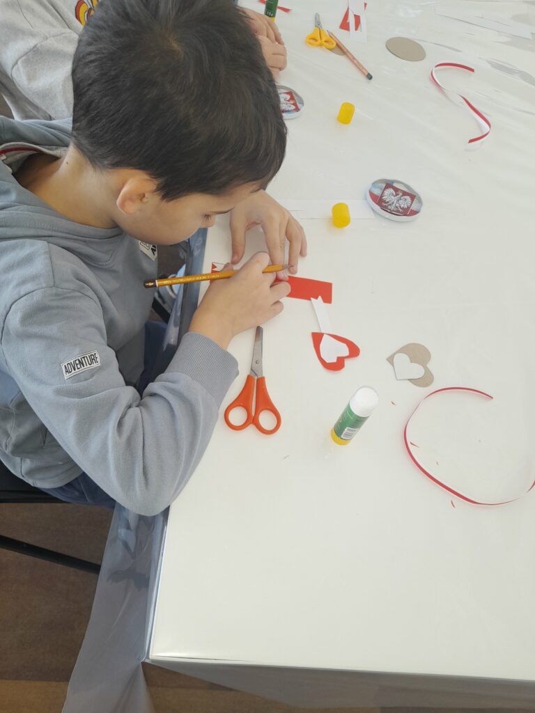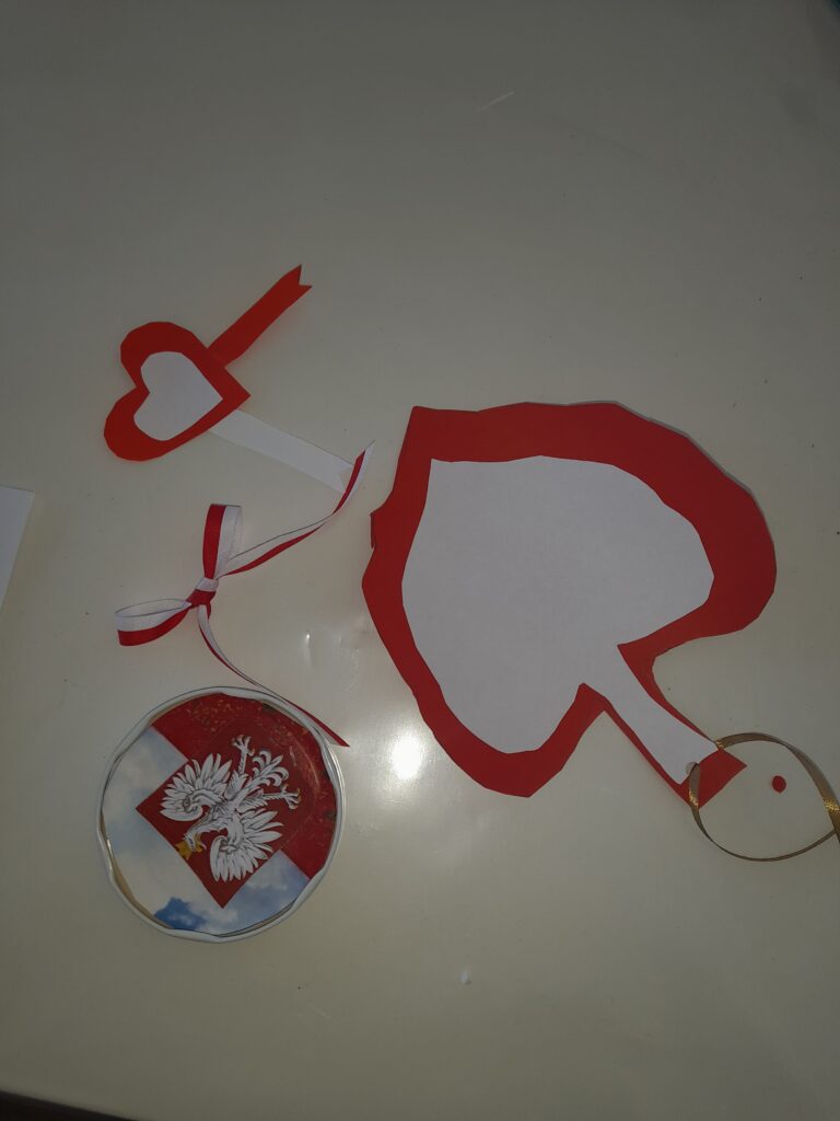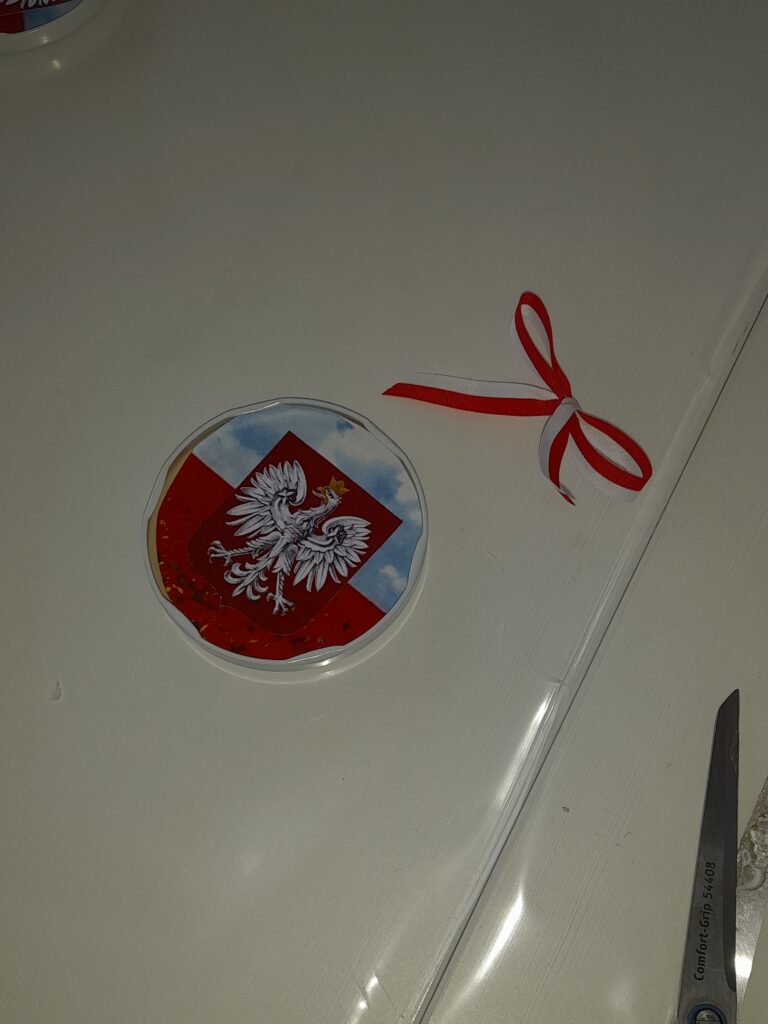 Dzieci wykonały magnesy z godłem narodowym oraz kokardy narodowe, potocznie zwane kotylionami narodowymi na 11 LISTOPADA 2025 r. – NARODOWE ŚWIĘTO NIEPODLEGŁOŚCI.