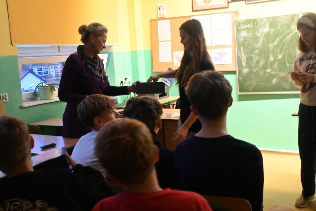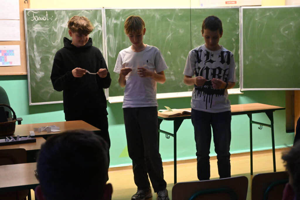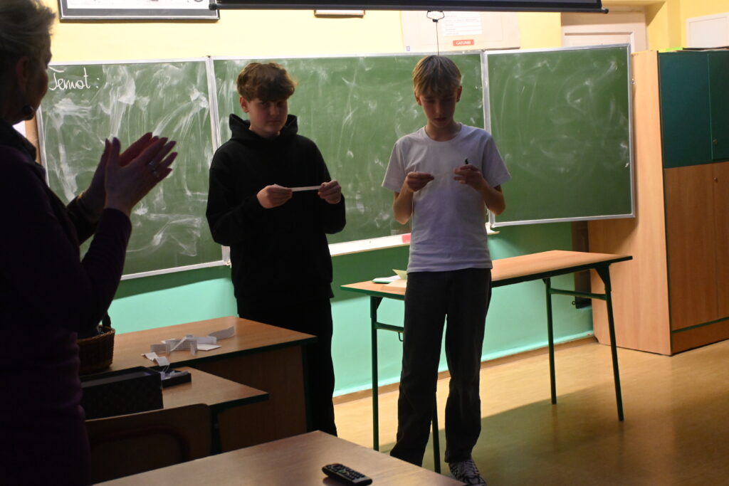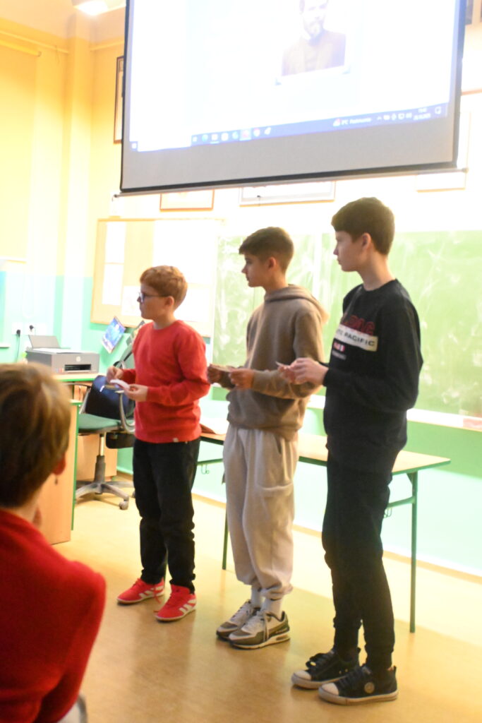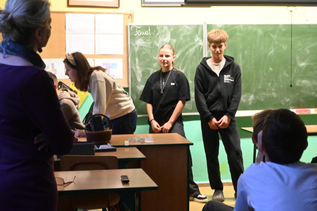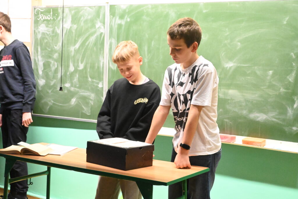 28 października odbyło się podsumowanie pracy warsztatowej. Siódmoklasiści zaprezentowali przygotowane w grupach prezentacje oraz pudełka lekturowe. Wykazali się przy tym zaangażowaniem i kreatywnością. Na zakończenie aktywnie uczestniczyli w konkursie na temat Stefana Żeromskiego i jego dramatu.