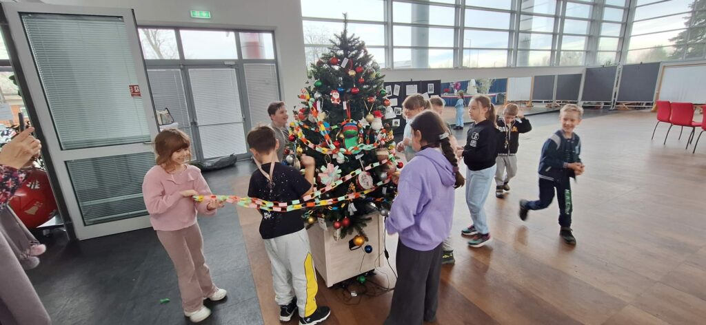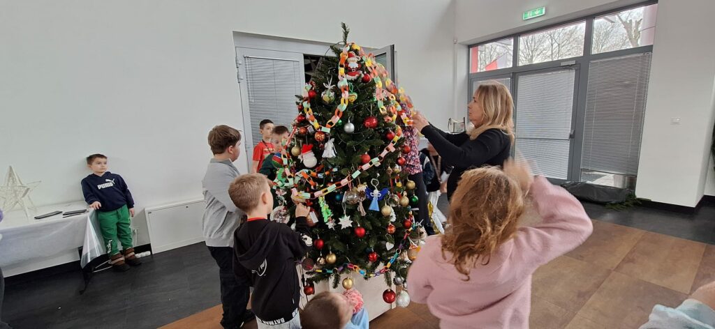 W środę 10 grudnia 2025r. uczniowie klasy II A Szkoły Podstawowej im. Marty z Budnych Łosiowej w Niemcach odwiedzili Gminną Bibliotekę Publiczną, żeby wspólnie ubrać świąteczną choinkę.